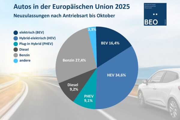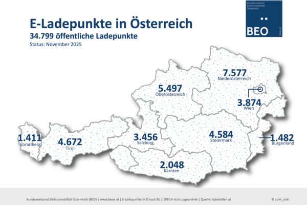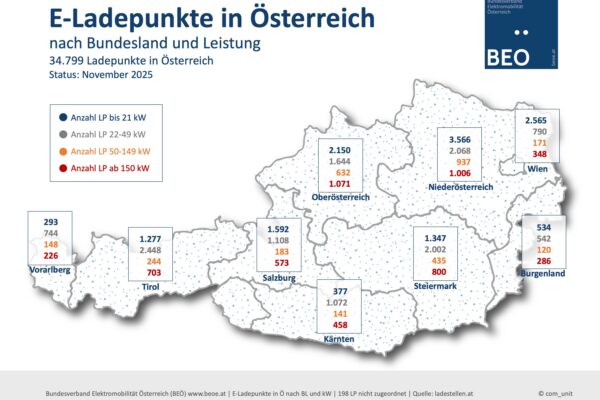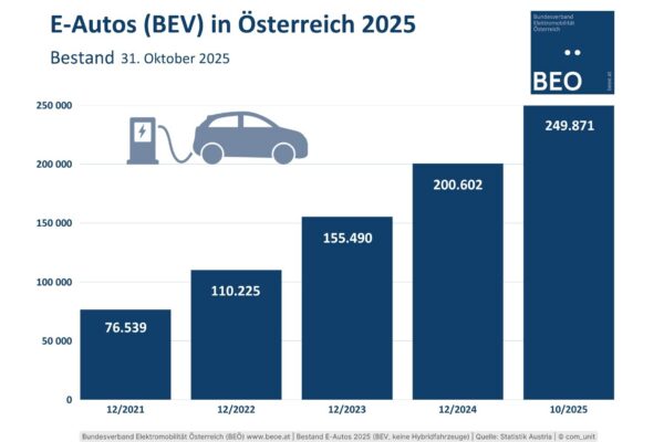 33.000 öffentliche Ladepunkte +++ 13.000 Ladepunkte der BEÖ Mitglieder +++ 51.316 Neuzulassungen bis Oktober 2025 +++ 249.871 E-Autos insgesamt +++